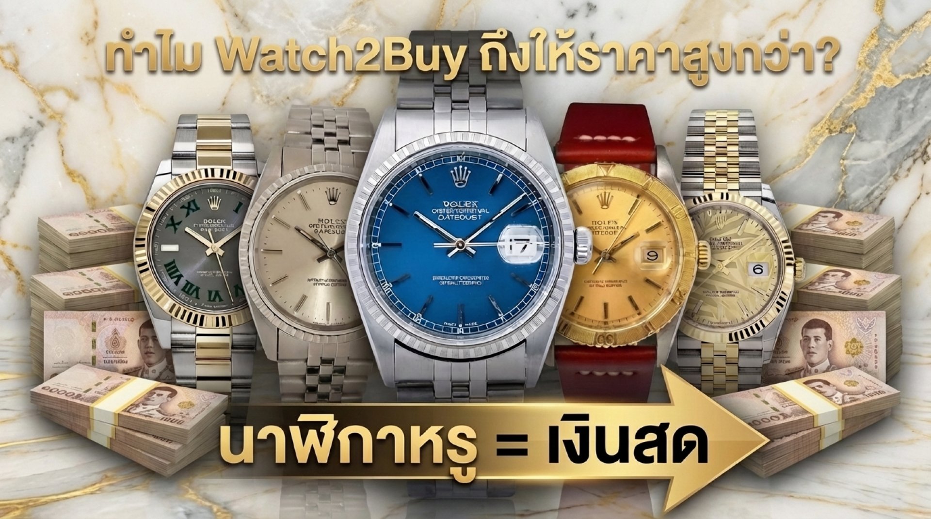 หากคุณกำลังสงสัยว่า "ขายนาฬิกาให้ได้ราคาสูงที่สุดทำอย่างไร?" หรือ "ใครคือผู้ซื้อนาฬิกาหรูที่เชื่อถือได้ในไทย?" บทความนี้มีคำตอบ และจะแสดงให้คุณเห็นว่าทำไม Watch2Buy จึงเป็นตัวเลือกที่ดีที่สุดของคุณ
